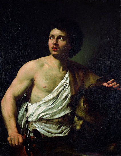 ダビデは『旧約聖書』の「サムエル記」に登場する人物。絵画では、ダビデとゴリアテの戦闘場面やダビデが勝利している場面が描かれる事が多い。