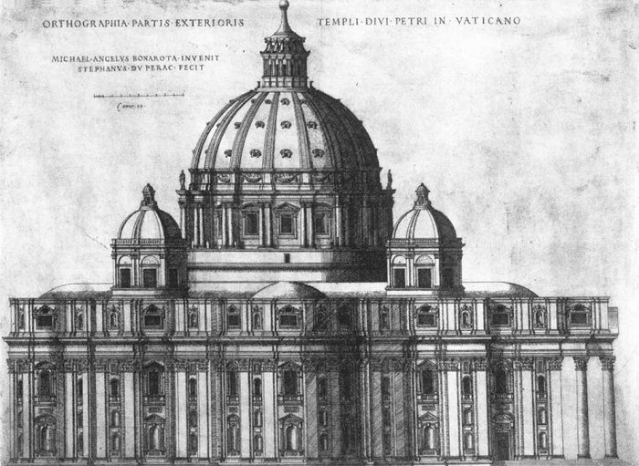 「サン・ピエトロ大聖堂のミケランジェロ設計案」(1547年)エティエンヌ・デュペラック