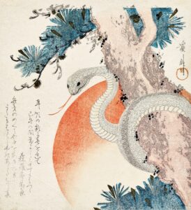 巳年の正月に相応しい! 渓斎英泉の「胆松に白蛇」